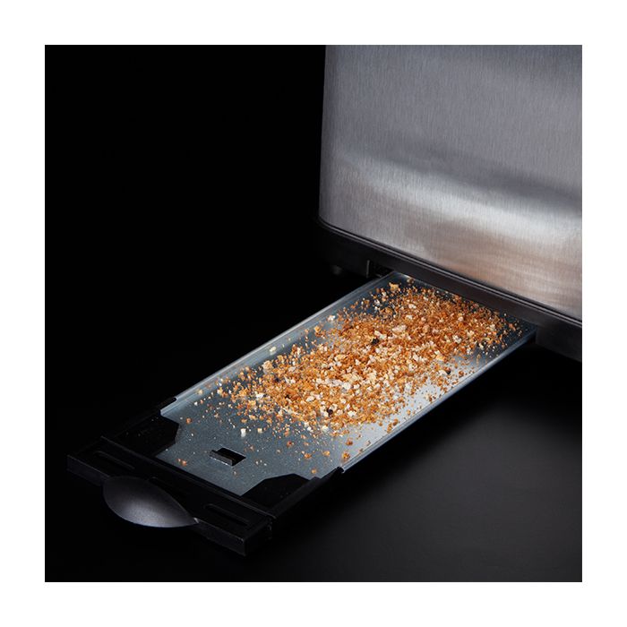 The defrost setting is utilised for frozen bread, the reheat allows for cold toast to be reheated and the cancel option may be utilised during operation. The indicator lights will also light up when the toaster has been switched on and operating. The toaster has a removable crumb tray which allows for easy cleaning and prevents hazardous build-up inside the toaster. The toaster also offers a unique function that automatically centres the bread slices inside the toaster ensuring an even browning.